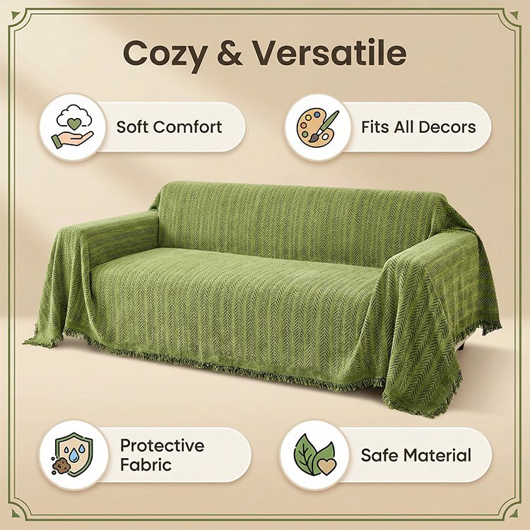 Unlike lightweight decorative covers, chenille fabric provides better structure and surface protection. It helps reduce visible wear on sofas, extending furniture life and lowering replacement costs for commercial buyers. The fabric’s thickness also improves slip resistance, ensuring the cover stays in place during daily use.