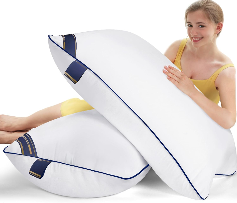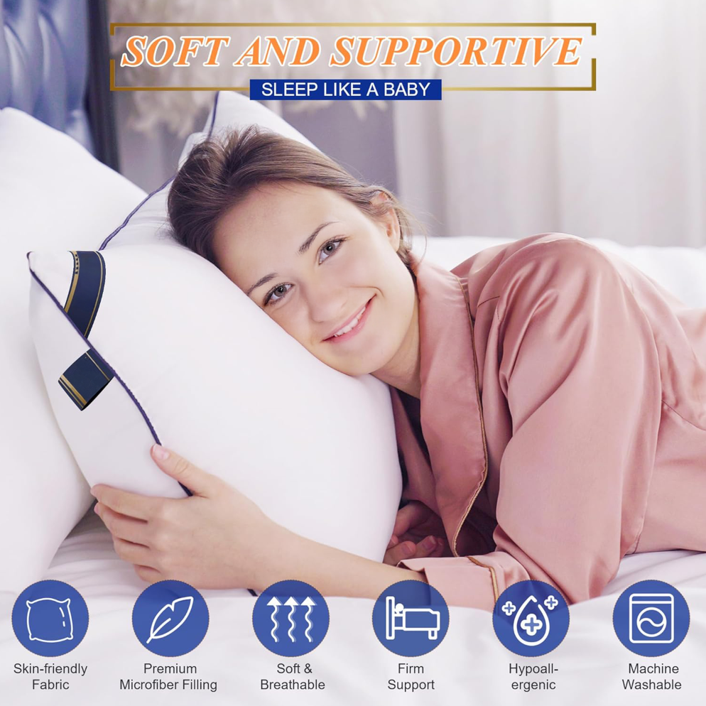 The pillow core uses a premium hypoallergenic alternative to down filling, mimicking the fluffiness and elasticity of natural down while avoiding the allergy risks associated with traditional down, making it suitable for all guests. The pillowcase is made of skin-friendly, breathable microfiber fabric, smooth and soft, with exquisite edging adding a touch of elegance to the guest room.