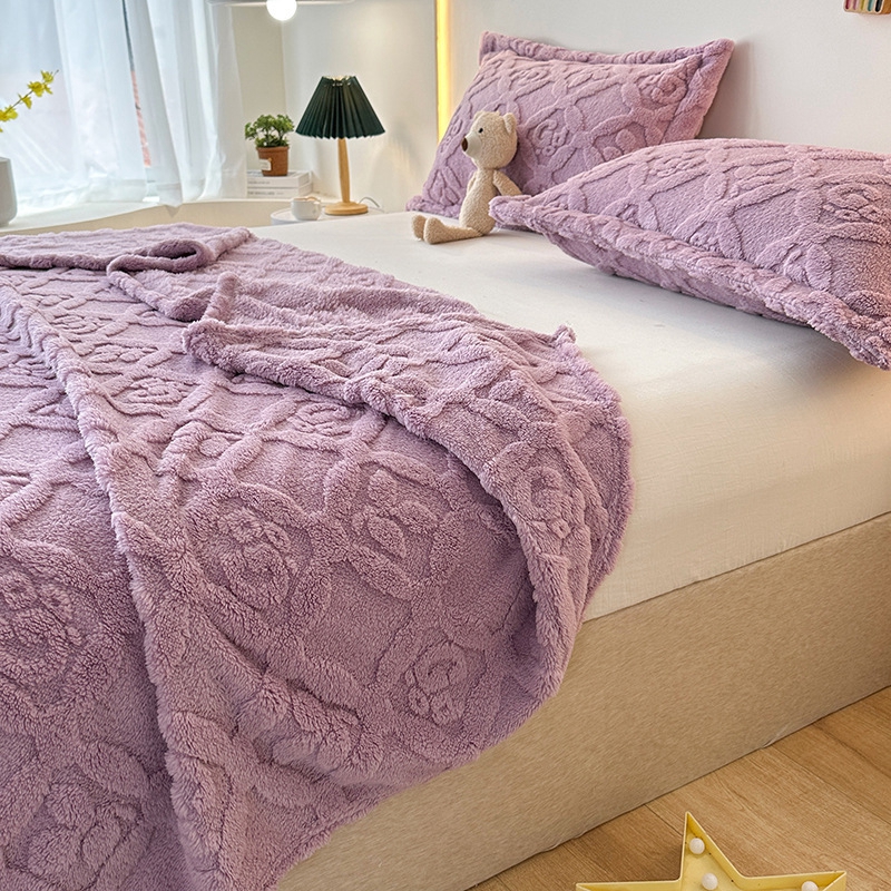 Hot Sale Bed Blankets Pink Color Jacquard Flannel Blanket 50*60” Coral Fleece Blankets for Couch Living Room